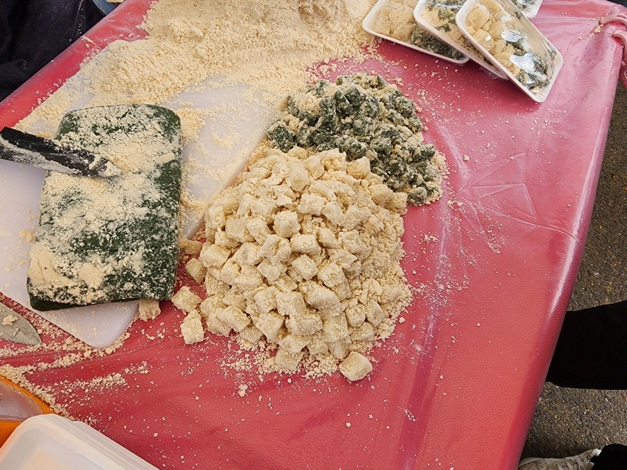 • 칼국수와 만두: 직접 반죽해서 만든  영진이네 수제 칼국수와 고기가 가득 들어간 만두도 장터의 명물입니다.