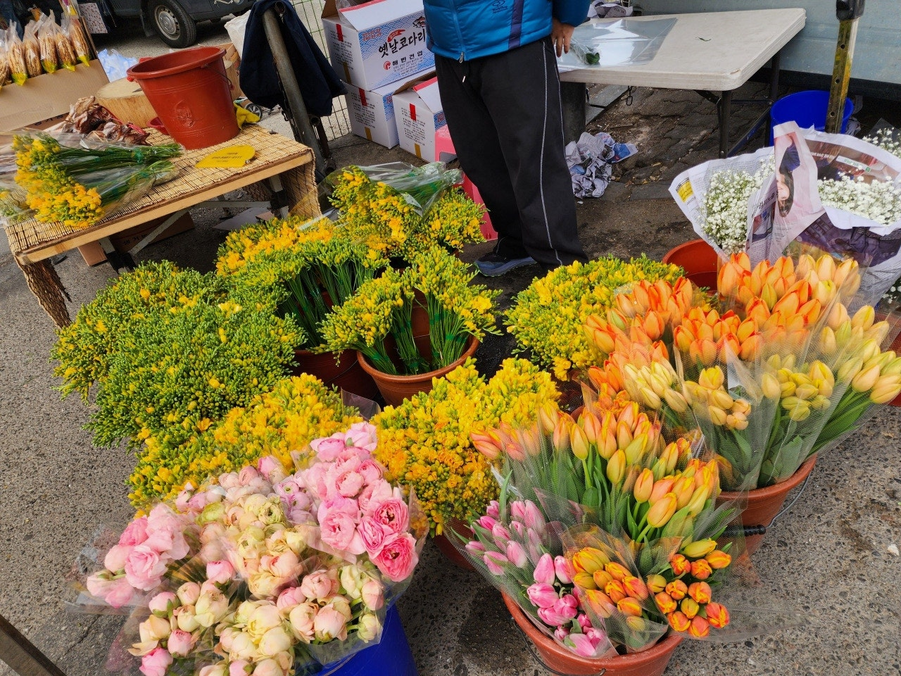 시장 한쪽에서는 트럭에서 제철 꽃을 판매하는 모습도 쉽게 볼 수 있습니다. 특히 봄철에는 후리지아, 튤립, 수선화 같은 꽃들이 가득해 장을 보러 온 사람들에게 계절의 정취를 더합니다. 향기로운 꽃 한 다발을 구매하면, 집에서도 시장의 따뜻한 분위기를 오래도록 간직할 수 있습니다.