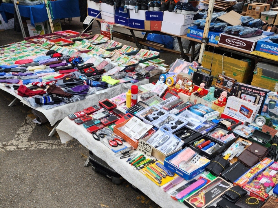 김포 5일장에서는 먹거리뿐만 아니라 다양한 생활용품도 구입할 수 있습니다. 옷, 신발, 가방, 이불, 주방용품, 농기구, 공구까지 일상생활에 필요한 물건들을 저렴한 가격에 만날 수 있습니다.