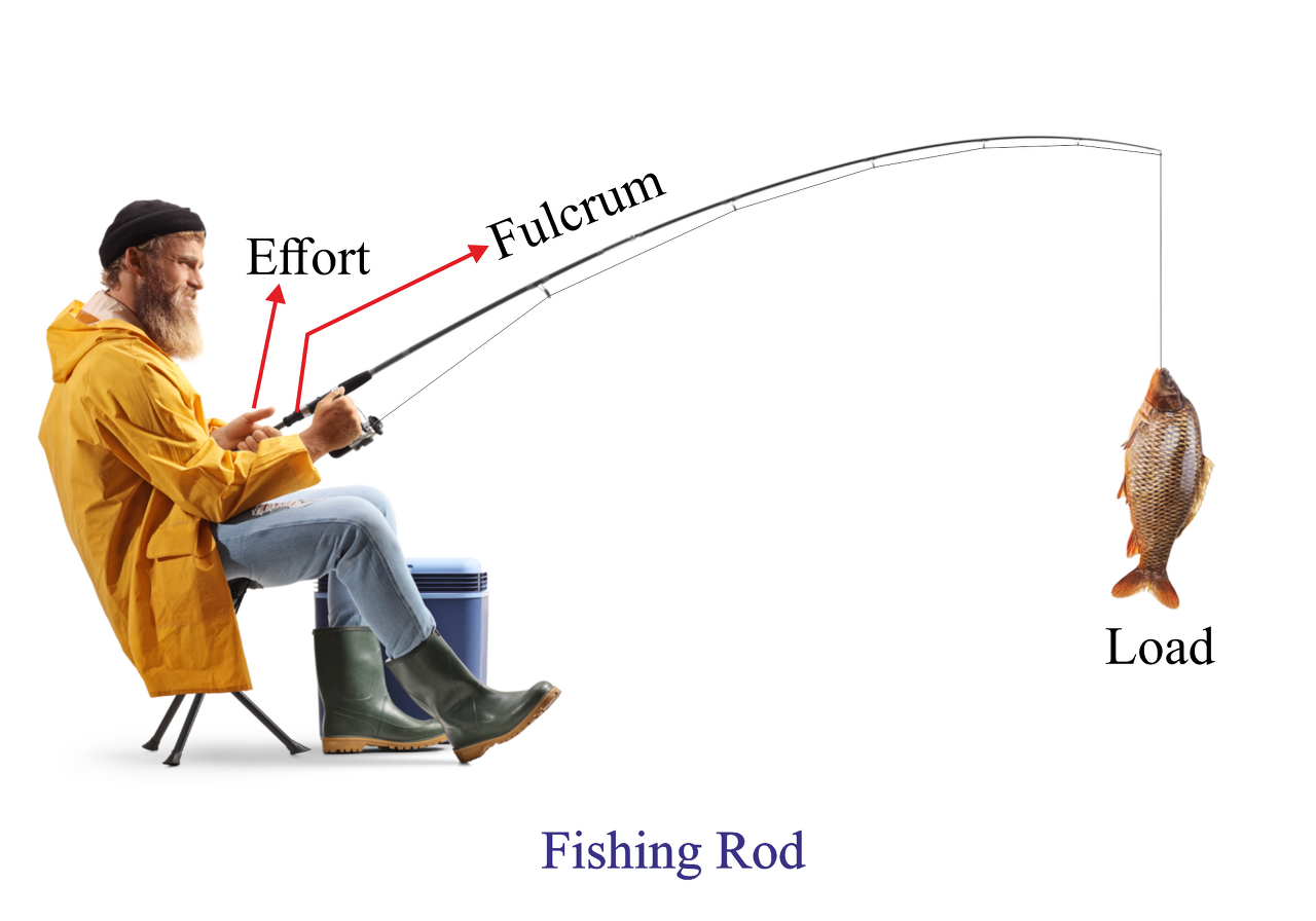 낚싯대의 경우 손잡이 부분이 힘점, 손목이나 팔꿈치 근처가 받침점 역할을 하며, 낚싯대 끝에 달린 낚싯줄과 물고기가 작용점에 해당합니다. 이 구조만 놓고 보면 낚싯대는 전형적인 3종 지레의 형태를 띱니다. 즉, 힘점이 받침점과 작용점 사이에 위치하는 구조입니다.