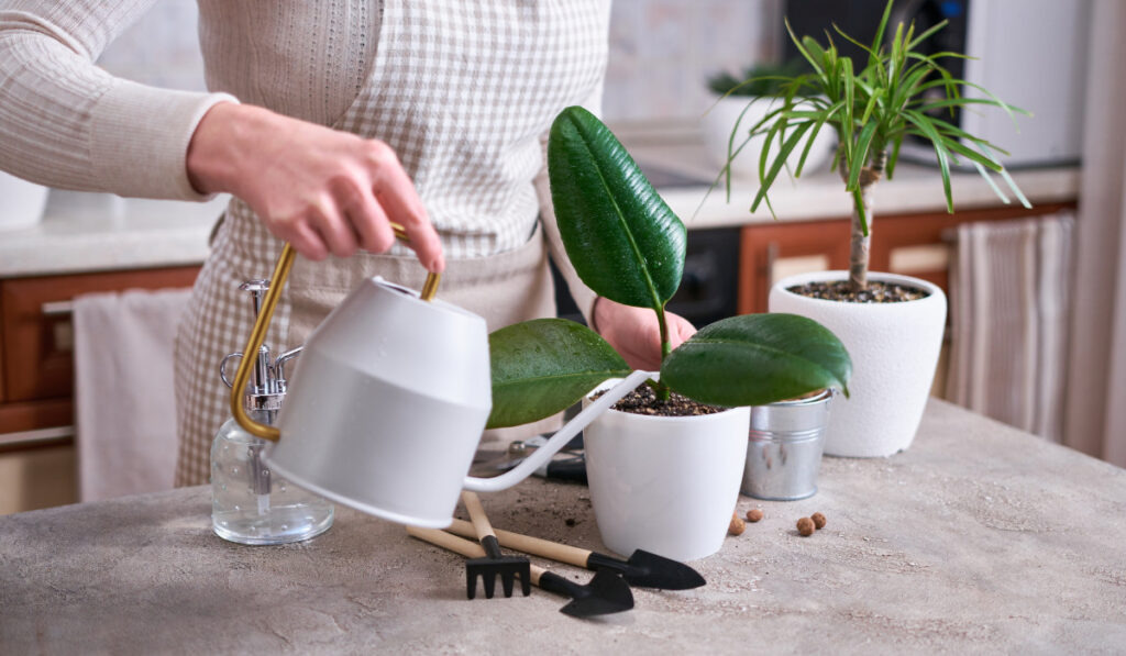 뱅갈 고무나무 관리에서 가장 많은 실패 원인은 과습입니다. 잎이 크고 두꺼워 수분을 비교적 잘 저장하기 때문에 물을 자주 줄 필요가 없습니다. 겉흙이 완전히 말랐을 때 흠뻑 주는 방식이 기본 원칙입니다.
