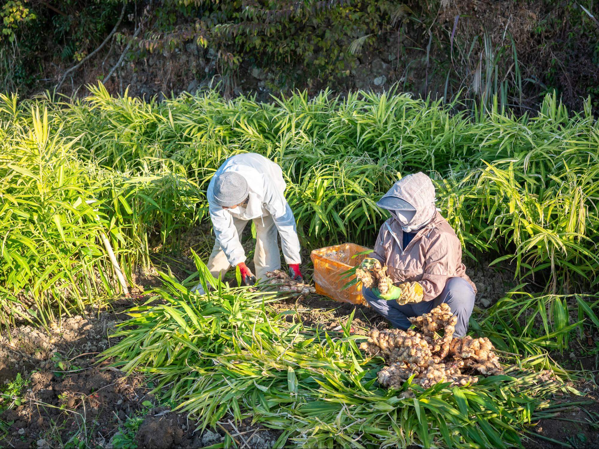 생강은 다른 뿌리작물과 달리 땅속 줄기가 옆으로 퍼지는 형태이기 때문에 캐는 방향과 깊이를 잘 조절해야 합니다.