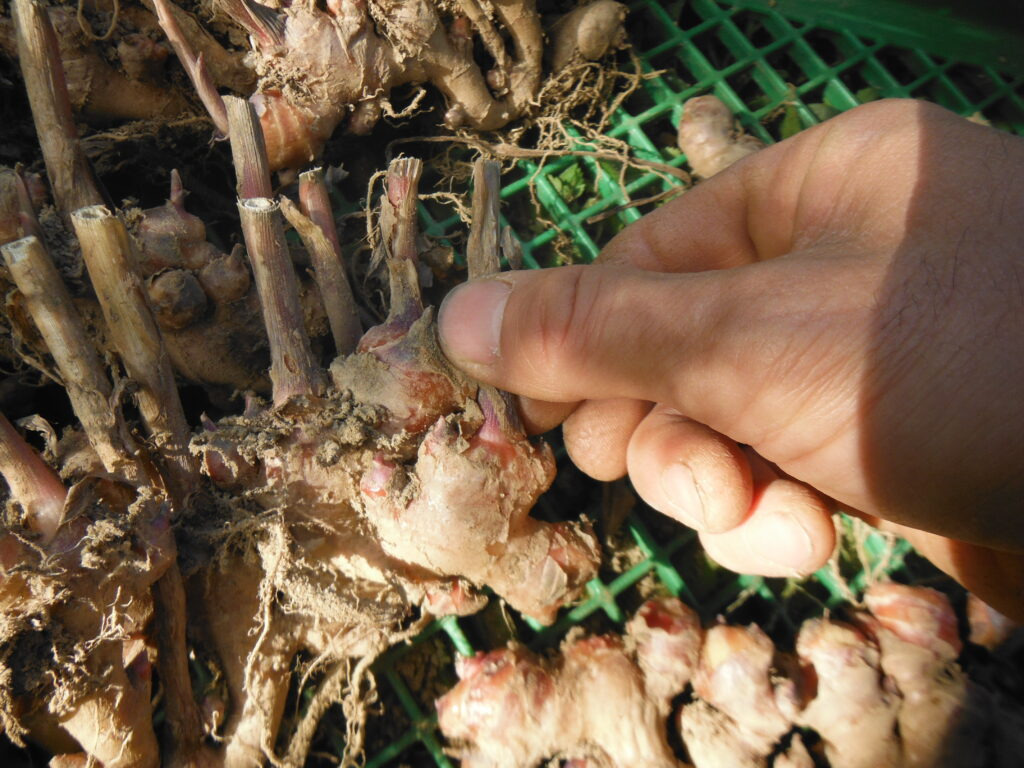 - 캐낸 생강은 줄기와 잔뿌리를 제거하고, 흙을 털어냅니다.